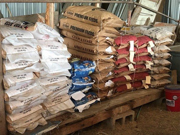 This month I bought six sacks of feed from my breeder Justin that I feed Lexi. I also bought some cotton seed and range cubes from Tractor Supply. This month I had to buy 20 sacks of creep feed and 10 sacks of chicken feed. The creep feed is fed to my older heifers that are penned with Lexi. Below is a picture of part of my feed room.