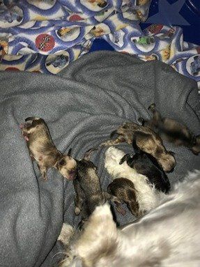 Also on June 23rdI assisted our female schnauzer Daisy as she gave birth to 6 healthy puppies. She had 4 girls and 2 boys. I can’t wait to see them grow. On the 27th we took the puppies and both parents to the vet to have the tails docked and declaws removed on the puppies. Daisy was not happy when the vet took her puppies to the back. She couldn’t wait to home so she could get back with her puppies.